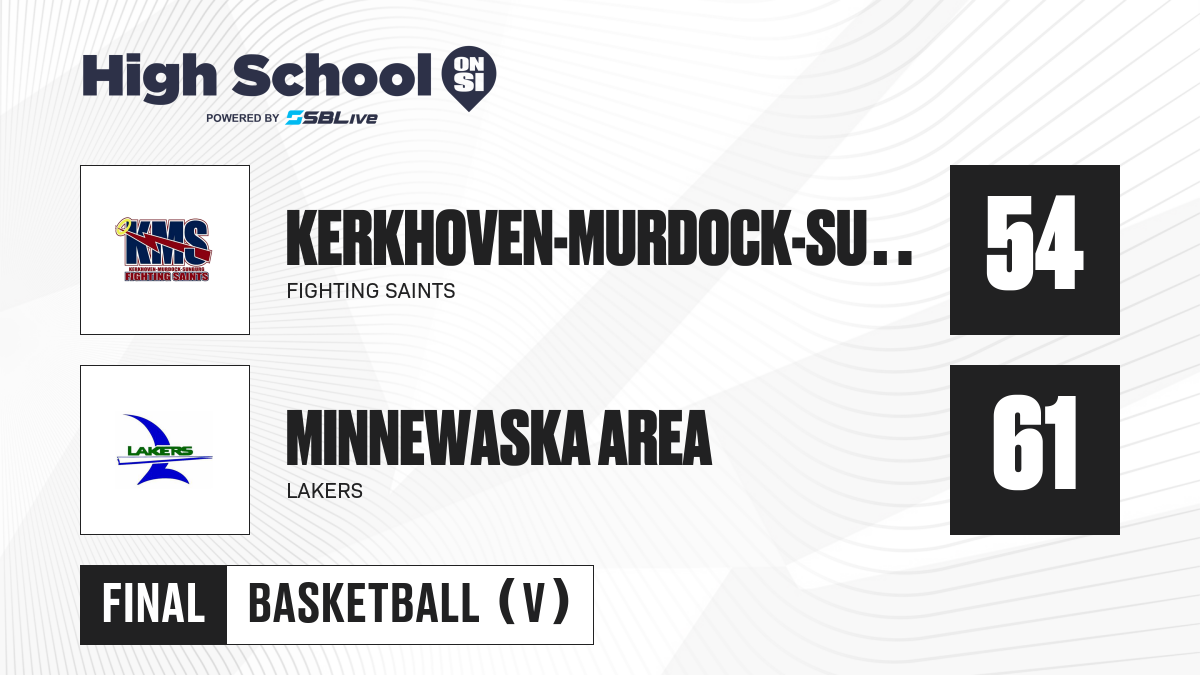 Minnewaska Area’s Marc Gruber led all scorers with 20 points as the Lakers beat Kerkhoven-Murdock-Sunburg Fighting Saints 61-54 in a game at Glenwood, MN.
